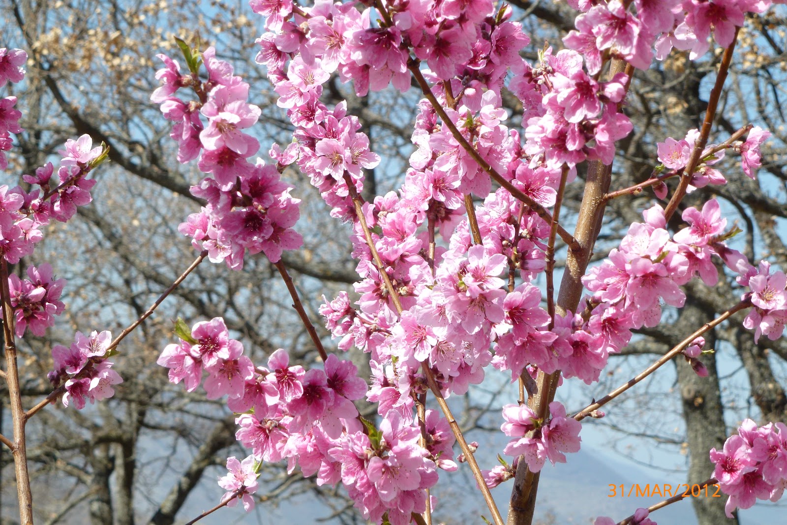 I sessantacinque alberi da frutto del Giardino della Memoria di Lucoli sono in piena vegetazione, in una stagione precoce, sembrano promettere con i loro fiori molti frutti.