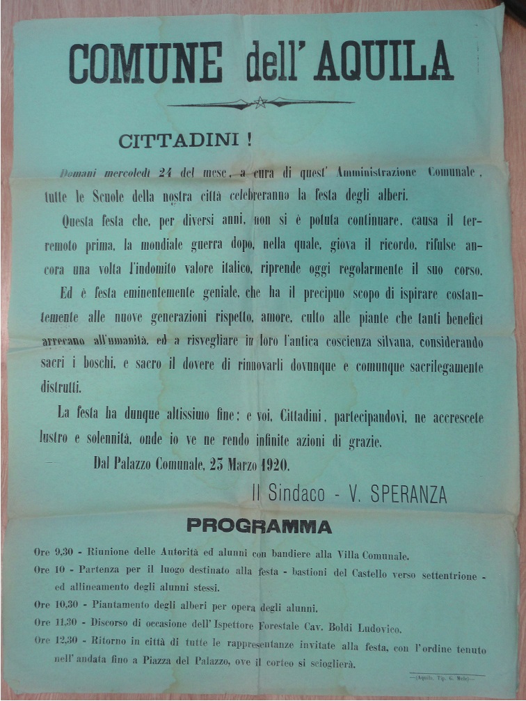 | Un documento del 1920 che celebra la festa degli alberi – documento gentilmente concesso da Fernando Rossi |
