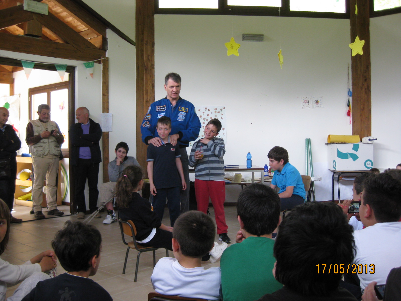 Guerre, tragedie, polemiche e speranze nella vita dell’uomo. Ma la terra vista dal cielo è un’altra cosa. Nespoli ritiene che l’umanità conosca tanto, ma nel confronto con l’universo tutti noi siamo insignificanti: un granellino di sabbia in mezzo alle spiagge di tutto il mondo. Alla presenza del Sindaco di Lucoli, delle insegnati, del personale scolastico e di tanti amici convenuti per l’occasione, Nespoli è riuscito a coinvolgere i bambini facendogli comprendere dei concetti veramente complessi in modo semplice.