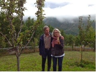 There is an abundance of pears at my market right now — Bosc, Comice, Seckel, red and green Anjou— but I’m only buying Williams (we call them Bartlett in the United States) pears. Whenever I bite into one, I’m taken back to last month when Dan and I, along with my son Joshua, paid our first visit to the Giardino Botanico della Memoria. Our NoiXLucoli friends (members of a small local group born after the Abruzzo earthquake of 2009, working to raise awareness of the beauty of this area) provided instructions for locating the tree that had been planted with our support, but we decided to walk through the garden and come upon it on our own. Strolling through rows of young trees, many already bearing fruit, I was struck by the intimacy of the garden. Set on a small hillside in the shelter of the Abbey of San Giovanni Battista and the shadow of the Sirente Velino mountain range, it is a peaceful place, a place where one can go to remember lost loved ones, or like I, who lost a city I had come to love, remember a place and find solace.
