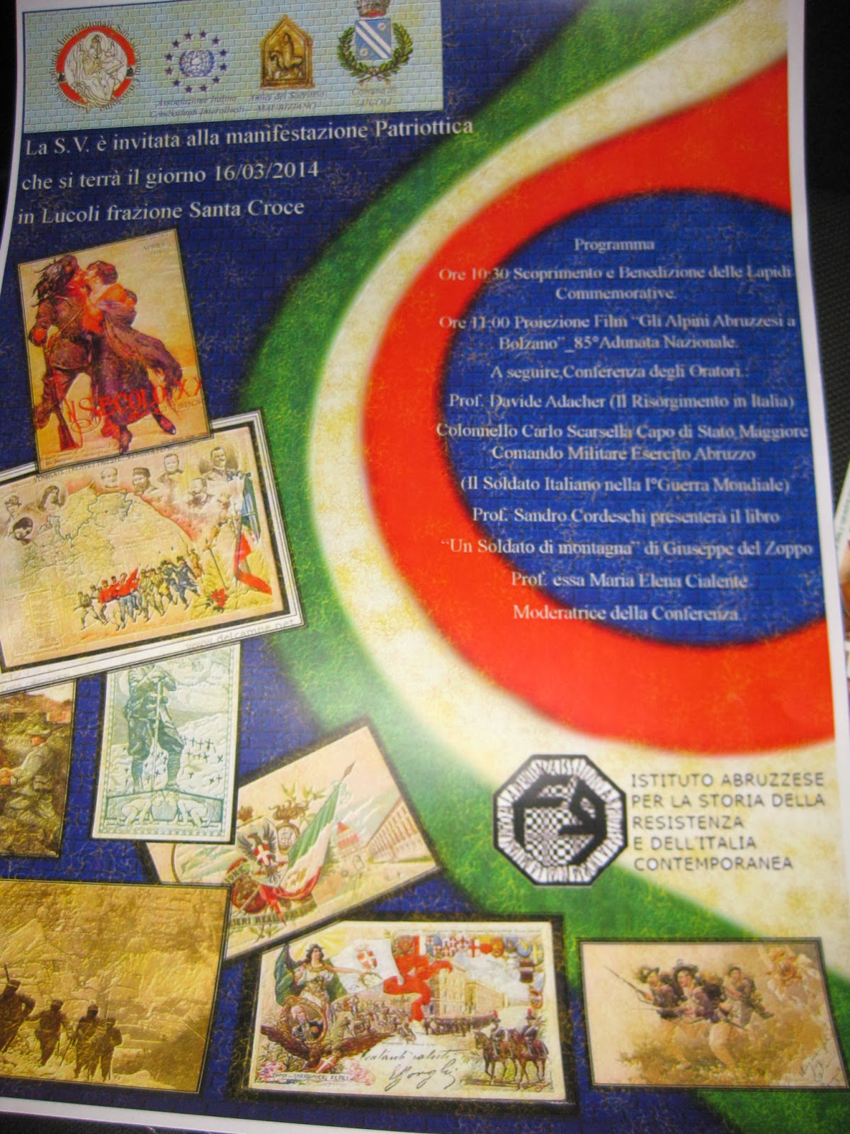 Prendiamo spunto dalla “Manifestazione patriottica” organizzata su iniziativa dell’Associazione Italiana dei Combattenti Interalleati col patrocinio, tra gli altri, dell’Istituto Abruzzese per la Storia della Resistenza e dell’Italia contemporanea, oltre che del Comune di Lucoli, che si terrà il 16 marzo p.v. a Santa Croce di Lucoli, per dedicare delle parole alla memoria dei nostri parenti che hanno fatto le guerre del novecento, soprattutto a quelli che non tornarono. Parole che siano come pietre di monito per le nuove generazioni per ricordare gli ideali di pace.