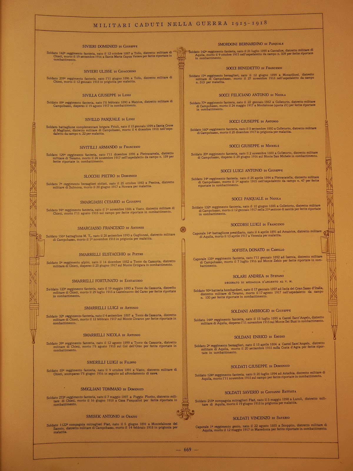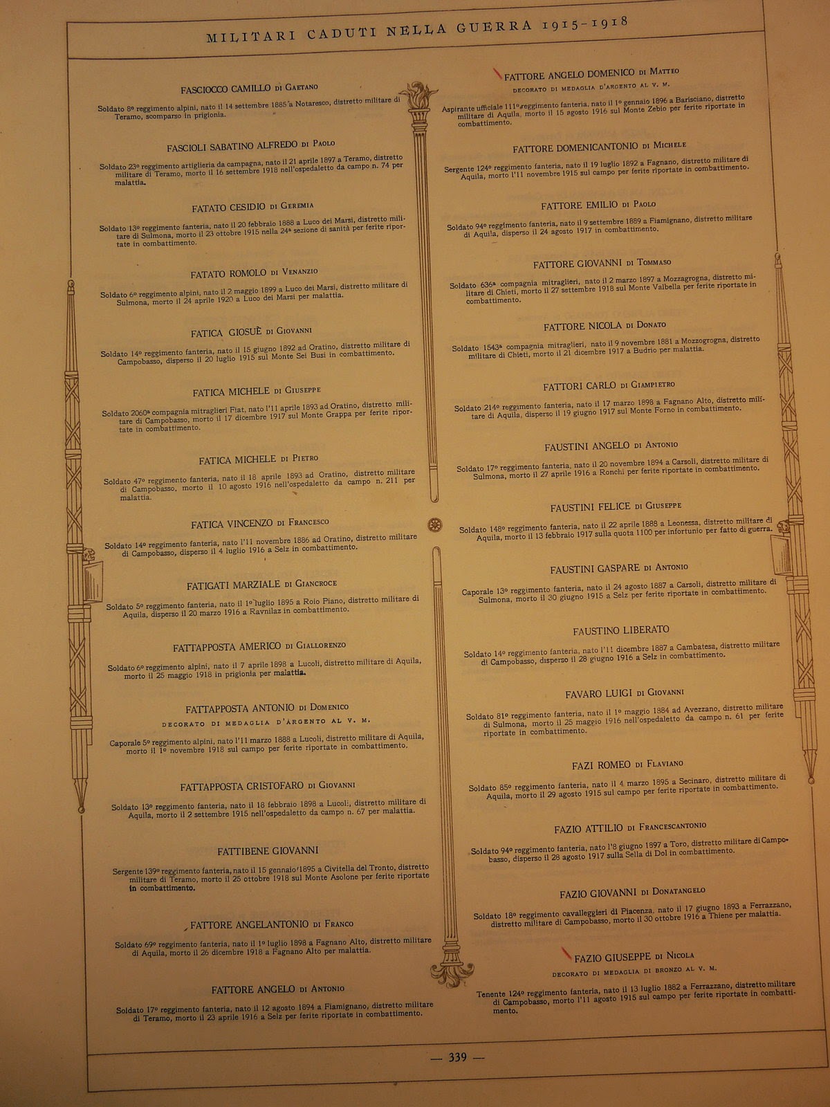 | Elenco dei militari caduti nella Grande Guerra alcuni nomi di Lucoli |