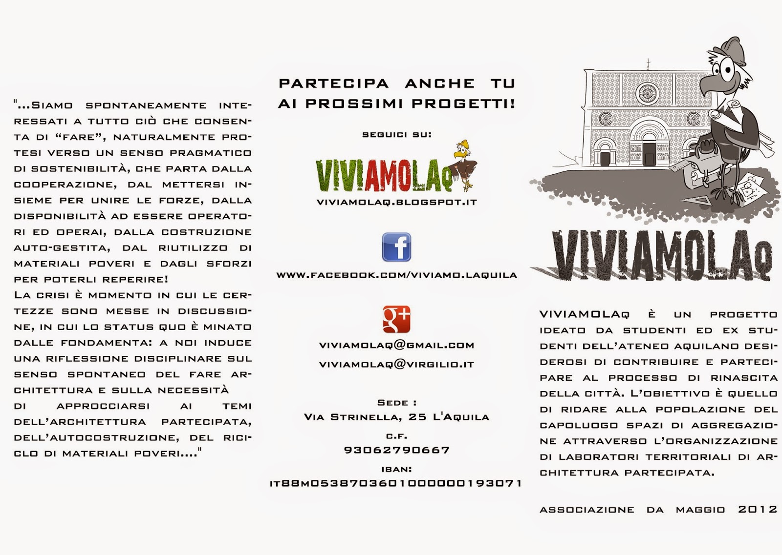 Insieme, lavorando, vogliamo fare cultura: per sfuggire agli illusionismi e ai lassismi che ci assediano, che ci fanno sembrare che tutto sia inutile, con spirito di resistenza per ricreare una cultura della cittadinanza attiva, fattiva e non parolaia, capace di muovere le cose e di progettare il futuro.