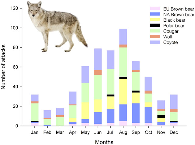 We did not include the wolf in Europe, because predatory attacks on people have been extremely rare during the last six decades, with the last recorded predatory attack occurring in 1974 in Spain.