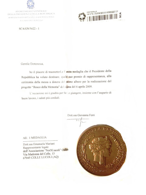 Noi abbiamo tentato di farlo con il Giardino della Memoria dedicato alle vittime del terremoto del 2009, progetto insignito di onorificenza dal Presidente della Repubblica Giorgio Napolitano, ma, che forse, a Lucoli è considerato come un laboratorio permanente di giardinaggio.