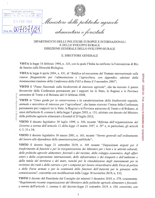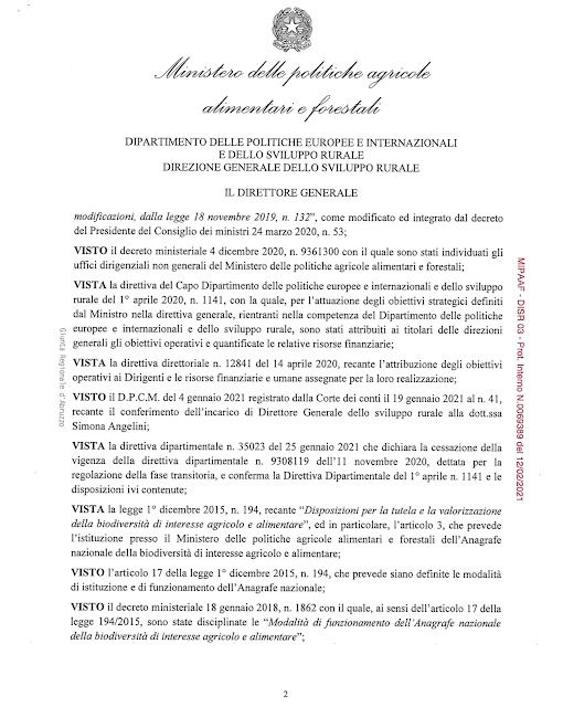 Alleghiamo il Decreto del n° 069389 del 12 febbraio 2021 del Mipaaf.