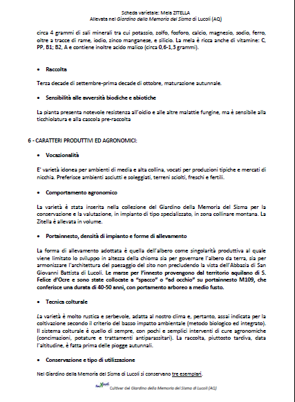 NoiXLucoli Onlus non è un’azienda agricola ma è impegnata nella coltivazione e conservazione in situ di molte specie frutticole dell’Appennino centrale soggette ad erosione, recuperate con cura da terreni agricoli dismessi. Perciò la nostra associazione si è proposta, per tre meli: m. limoncella, m. ruggine e m. zitella anche come soggetto “Agricoltore Custode” e a breve otterrà il riconoscimento. Inoltre, ha già presentato domanda di iscrizione all’anagrafe regionale per altre varietà di melo e di pero.
