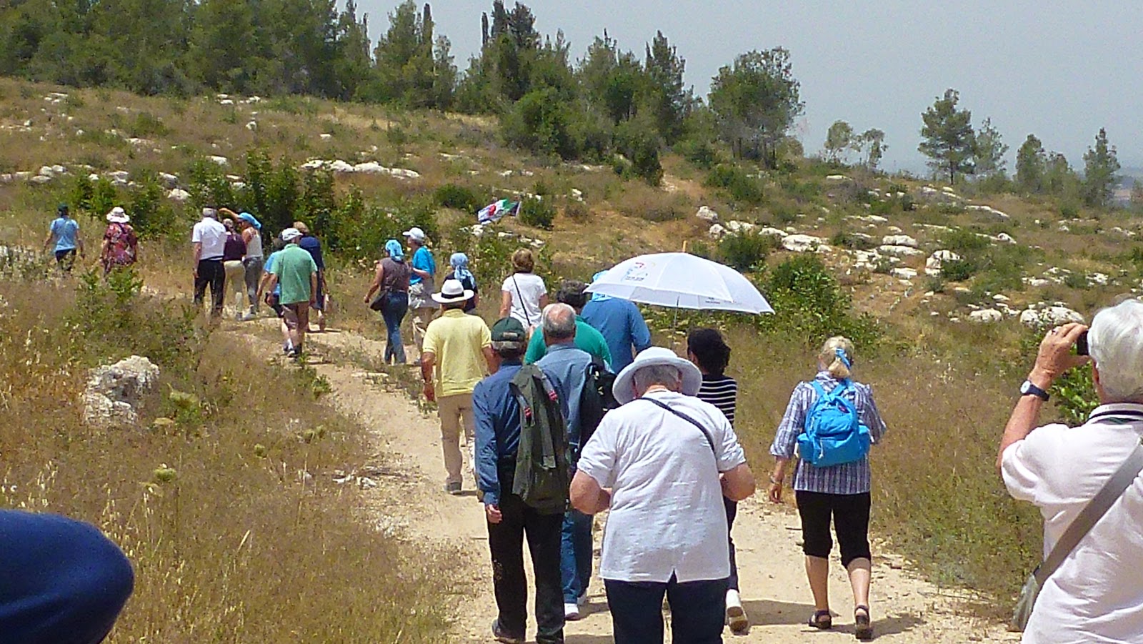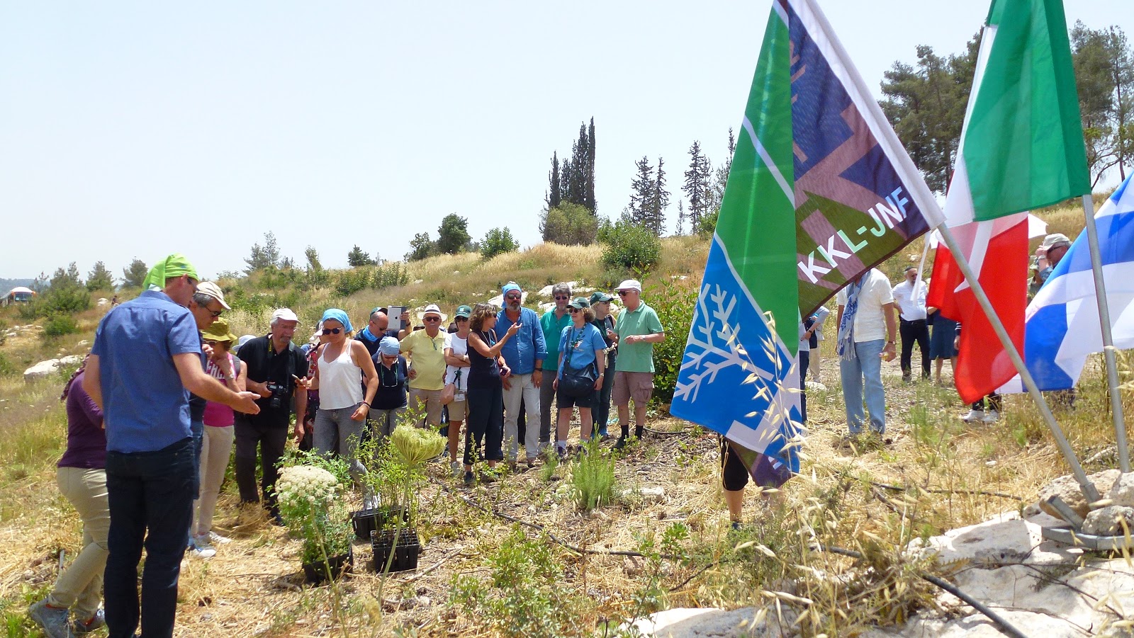 | Il gruppo dei partecipanti mentre si appresta a piantare alberi in un bosco che sta sorgendo vicino a Gerusalemme |